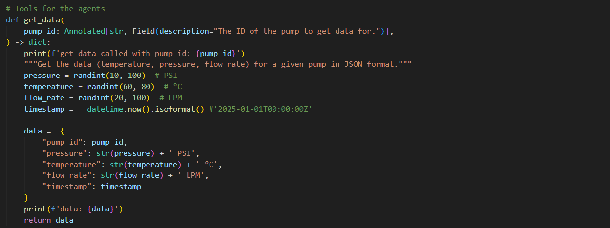 - get_data:获取某个泵/设备的数据(temperature、pressure、flow rate),以 JSON 返回。
