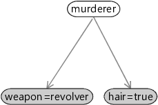 $$ P(\text{hair}=\text{true}\mid \text{murderer})= \begin{cases} 0.5 & \text{if } \text{murderer}=\text{Grey}\\ 0.05 & \text{if } \text{murderer}=\text{Auburn} \end{cases} \quad (1.32) $$正如我们之前看到的,这里给出的并不是 hair 上的一个概率分布,而是“在 murderer 取不同值时,hair=true 的条件概率”。因此式 (1.32) 中的两个数不需要相加等于 1。